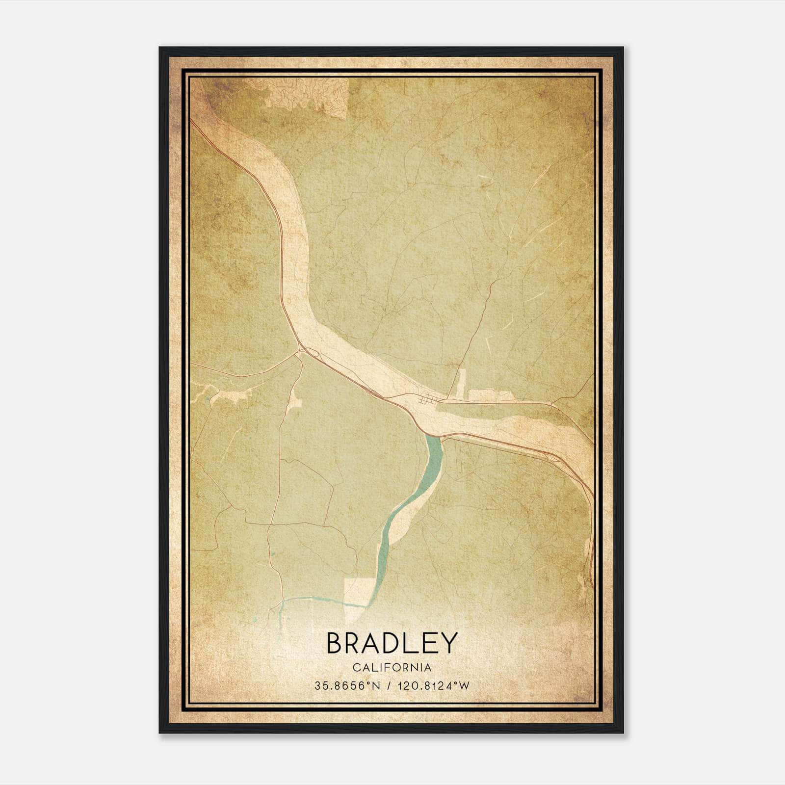 Vintage Bradley California Map Poster, Bradley CA City Road Wall