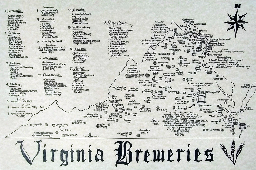 Map Of Breweries In Virginia – Bricks & Barrels in Charleston, West Virginia offers a unique dining experience with its barrel-themed seating and top-rated food and drinks. The Kirkwood Winery in Summersville, West Virginia, hosts . Virginia Lt. Gov. Winsome Sears (R) filed paperwork this week to run for governor next year in the state. Sears’s paperwork was accepted Wednesday by Virginia’s Department of .