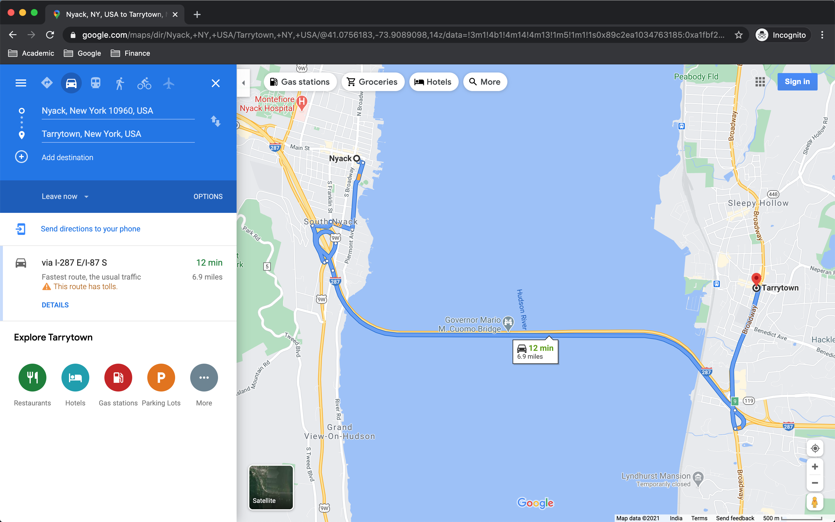 Google Maps shows the Tappen Zee/Governor Mario M. Cuomo Bridge as